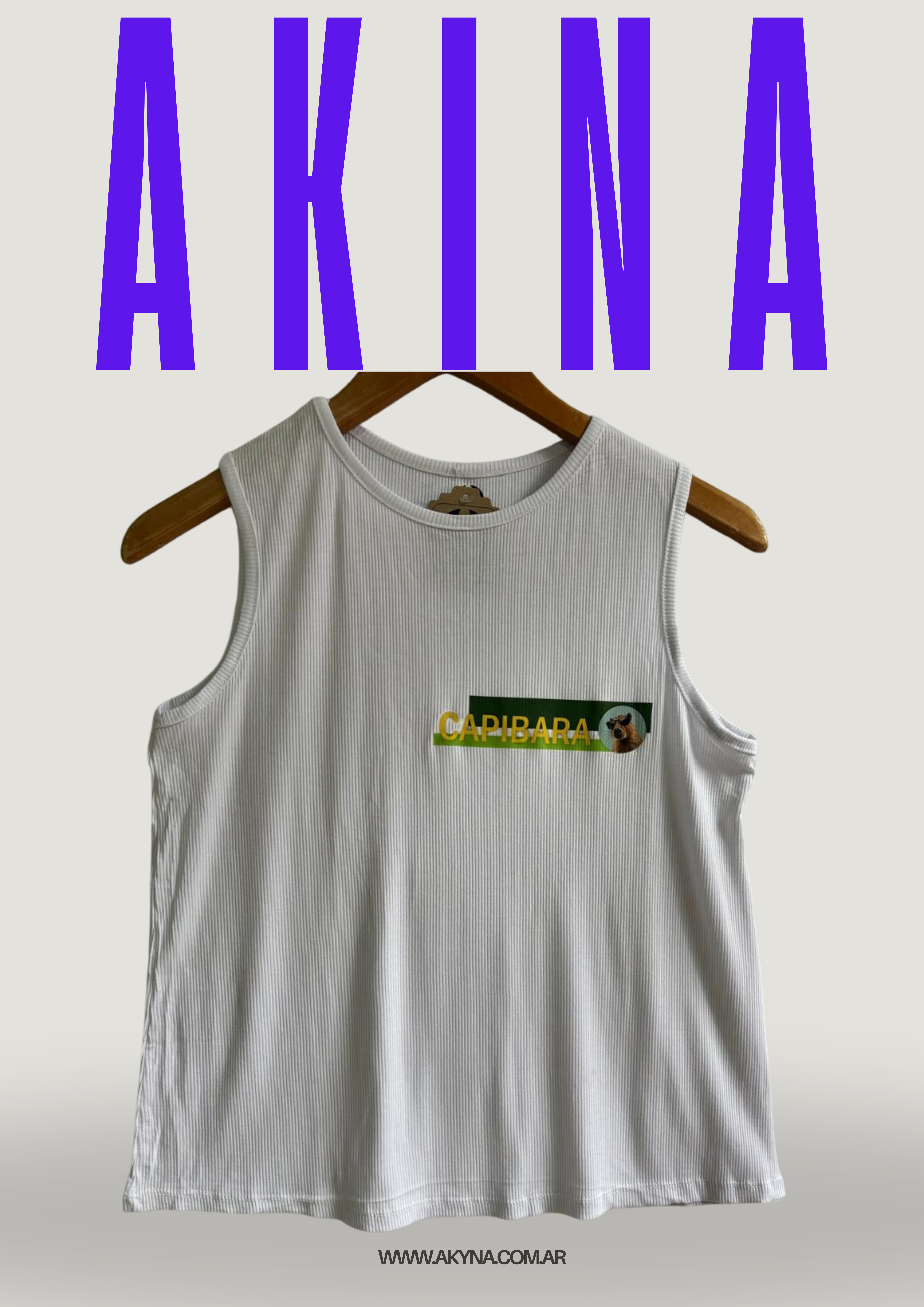 Remera musculosa, confeccionada en morley viscosa . Se destaca su estampa única de la colección realizada en el frente de la prenda.