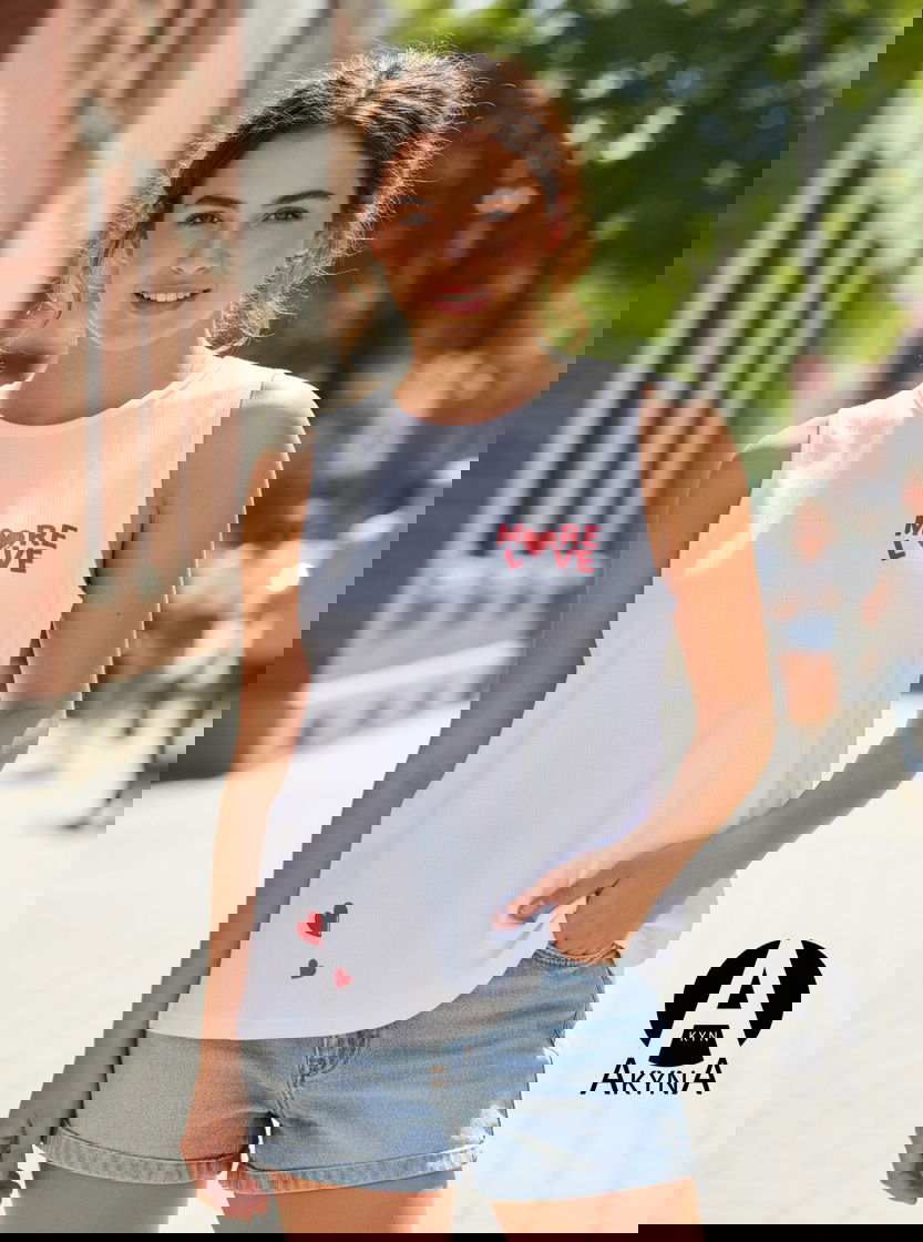 Remera musculosa, confeccionada en morley viscosa . Se destaca su estampa única de la colección realizada en el frente de la prenda.