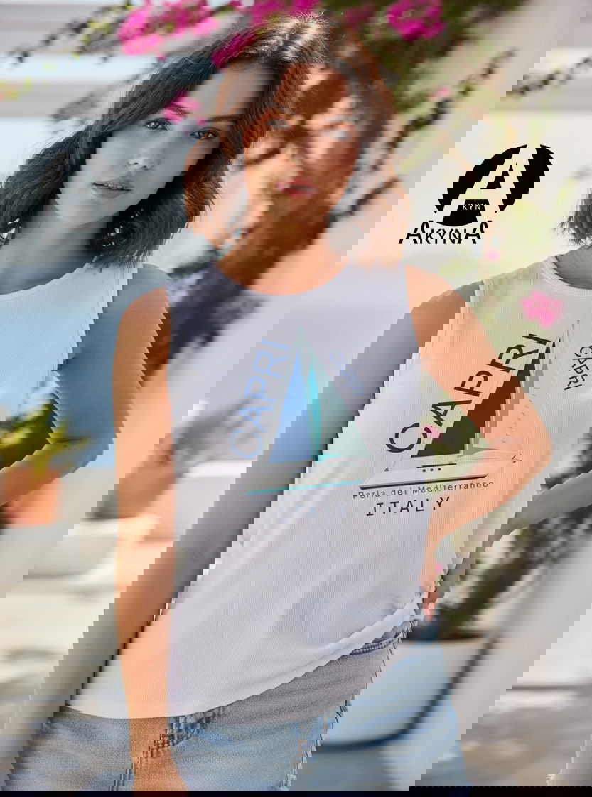 Remera musculosa, confeccionada en morley viscosa . Se destaca su estampa única de la colección realizada en el frente de la prenda.