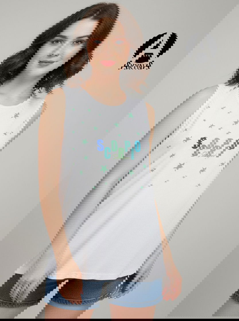 Remera musculosa, confeccionada en morley viscosa . Se destaca su estampa única de la colección realizada en el frente de la prenda.