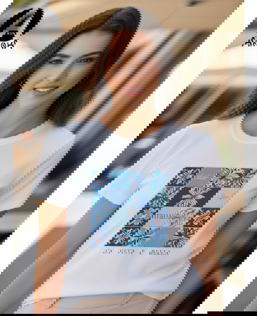 Remera confeccionada en morley viscosa . Se destaca su estampa única de la colección realizada en el frente de la prenda.