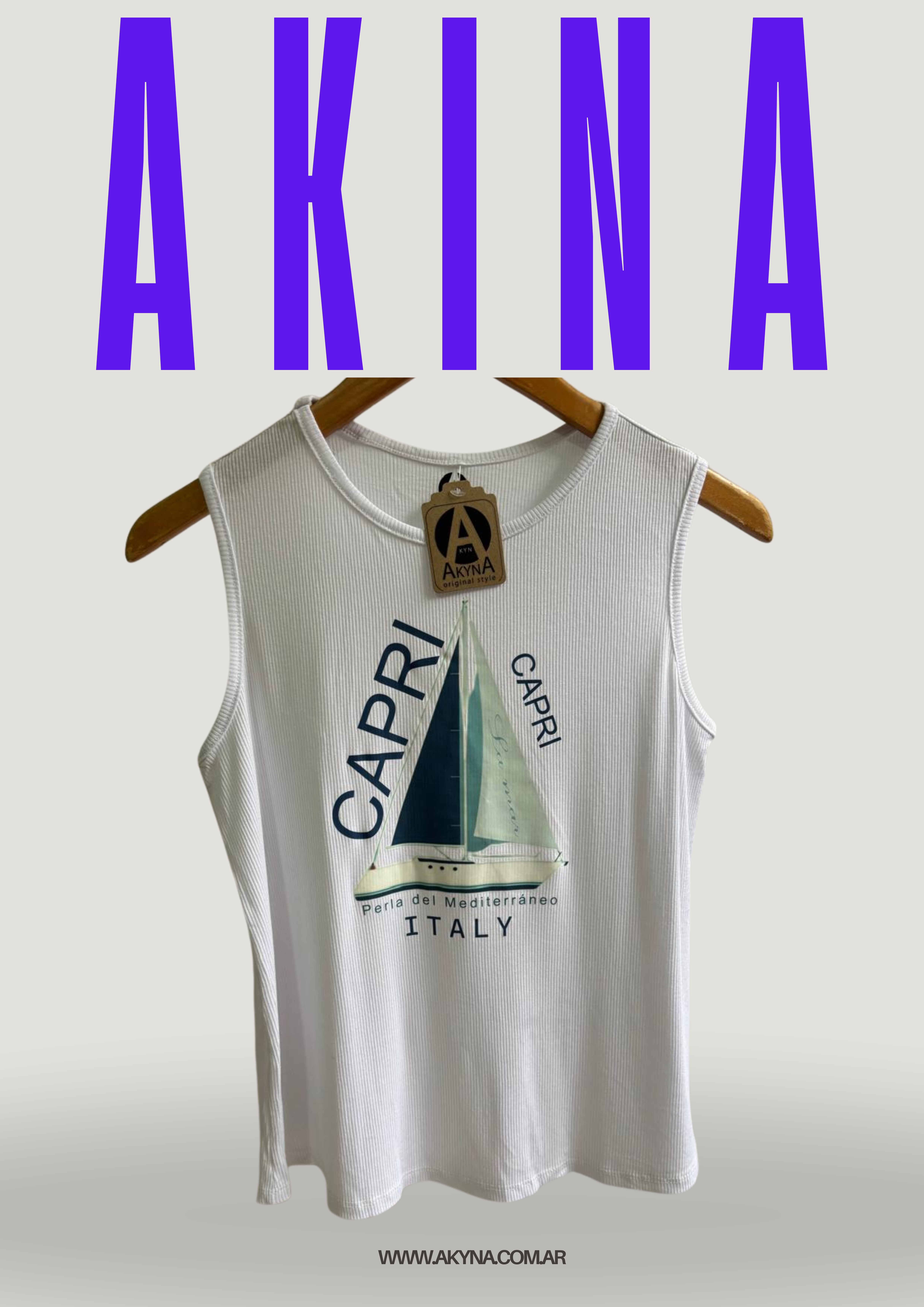 Remera musculosa, confeccionada en morley viscosa . Se destaca su estampa única de la colección realizada en el frente de la prenda.